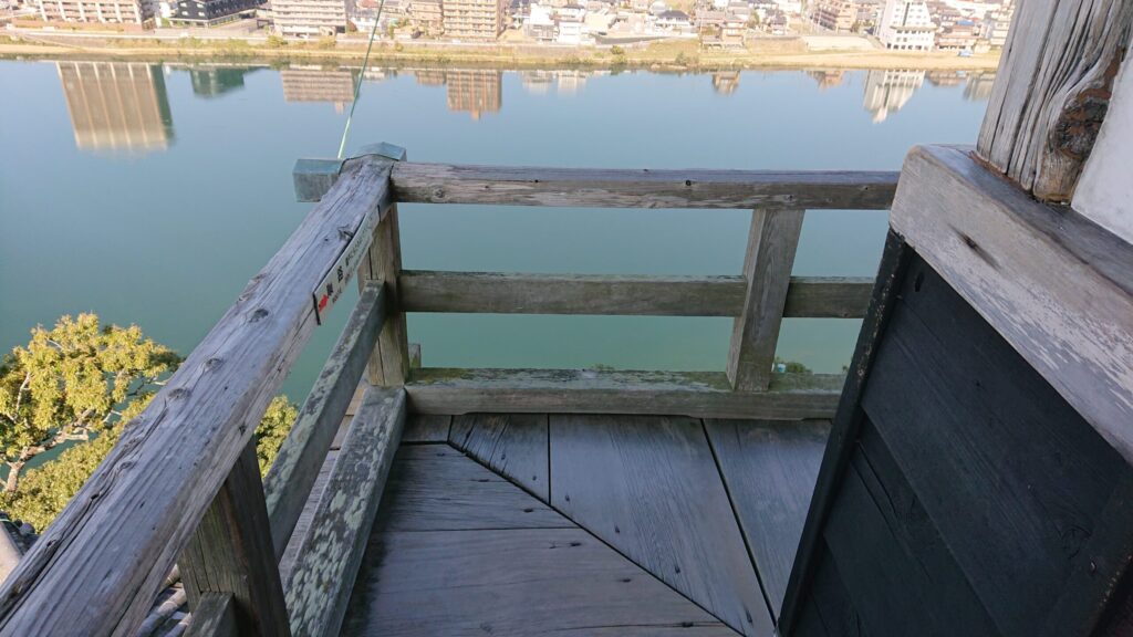 天守の最上階にある物見のための回廊。高欄という欄干がセットになる。