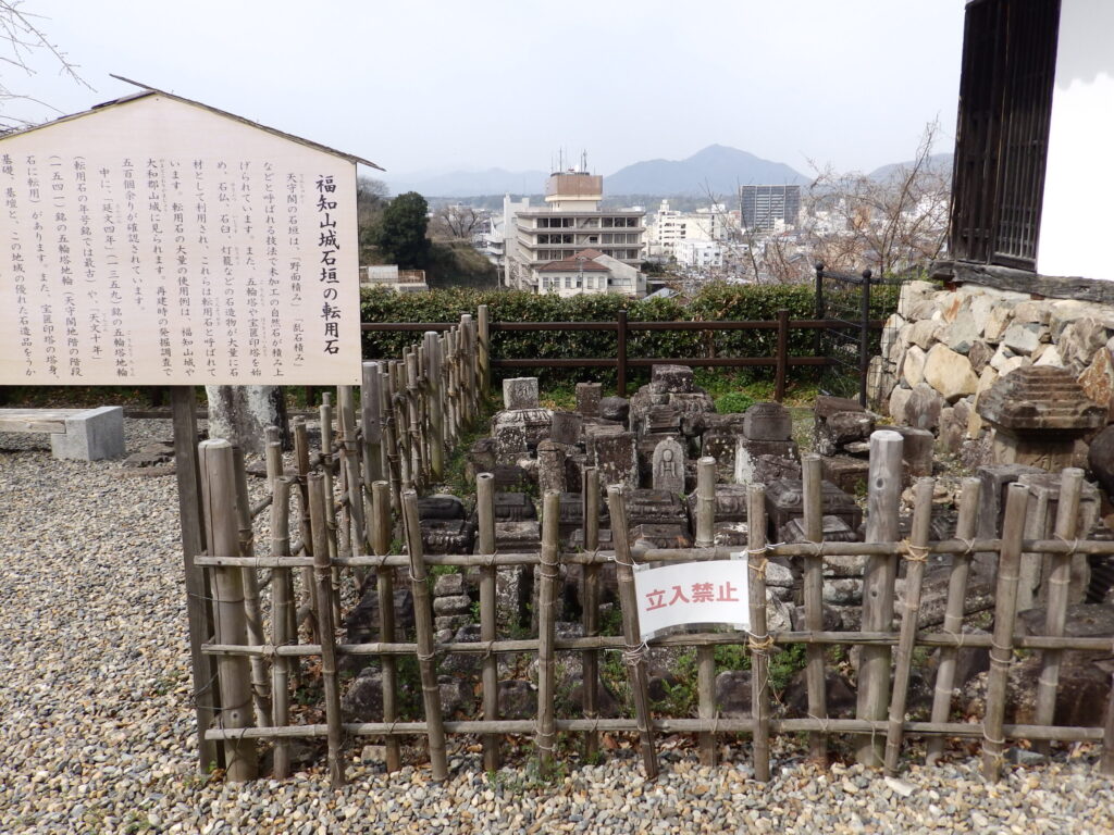 転用石は、単なる再利用された石材ではなく、福知山城の外観や構造の経緯を理解するうえで欠かせない要素といえるのかもしれません。
