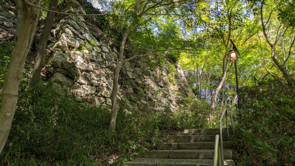 西の丸も山城にしては広い敷地があり、観光客もそれなりに訪問して下界を眺めています。これから上る本丸は寺院があるせいか、あまり眺望が開けておらず、周辺の景色を楽しむなら北の丸・西の丸を訪問することをお勧めします。