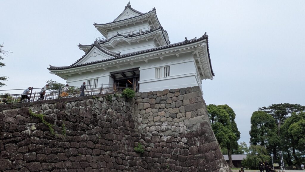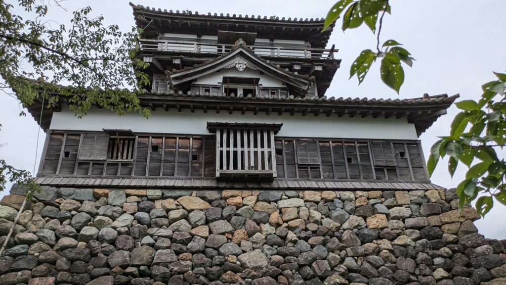 丸岡城の場合は、1624年(寛永元年)本多成重が福井藩から独立した大名となった際に天守を新築したが、元々天守があった城として新築でなく再建として建造が認められたとすれば法度との整合も取れます。その際に旧来通りに再建という体裁を保つため、旧天守に外観を良く似せた時代遅れの望楼型天守を天正期の石垣の上に建てたとなれば、私たちが日本最古の現存天守かとおもっていたのも納得できます。