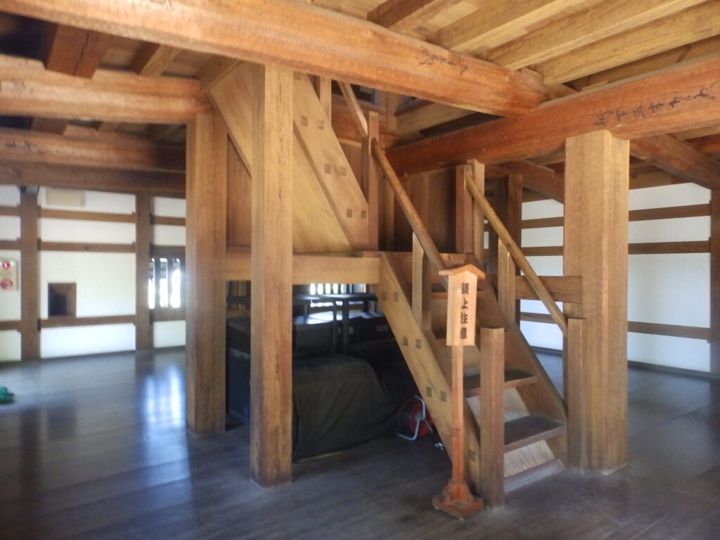 天守内部は真夏日でも、それ程の暑さは感じませんでしたが、城内の最高所に建てられているので、駐車場から距離があり天守に着くまで数度の階段を上がります。結構な汗と体力を使いますのでご注意ください。いま振り返ると、35℃あったと記憶している暑さのせいか、普段と違い写真も余り撮っていません。城好きの私でも驚くほど撮った写真が少ないのです。一年中エアコンの効いた鉄筋コンクリートの復興天守を見直しました。一人旅だと、結構無理して場内をあちこち歩き回るのですが、一緒に行動する人がいれば健康面も気になるので、冷たい食べ物や飲み物がある休憩所や売店に猛ダッシュしたのです。