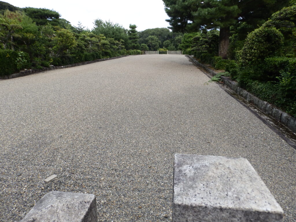 この旧伏見城城門を後にして、再び桃山丘陵地に地図に従い進みます。丘陵地の坂道で整備された舗道を歩きますが、交通量も少ない洛南の高級住宅地という風情でした。そうはいっても最近の9月上旬の暑さです、この坂道は歩きには結構きついところでした。長い坂が続き伏見城は平山城であったことが実感されます。