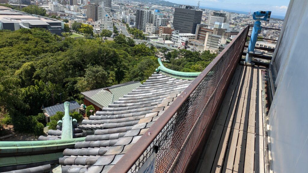 そのうちいつかは伏見桃山城のように大地震の際の危険性で入館できず、遠目に天守だけを眺めるだけの日々が訪れるのかもしれないと思いつつ、天守と天守曲輪櫓群を一周して、天守欄干から城下の景観を楽しみました。