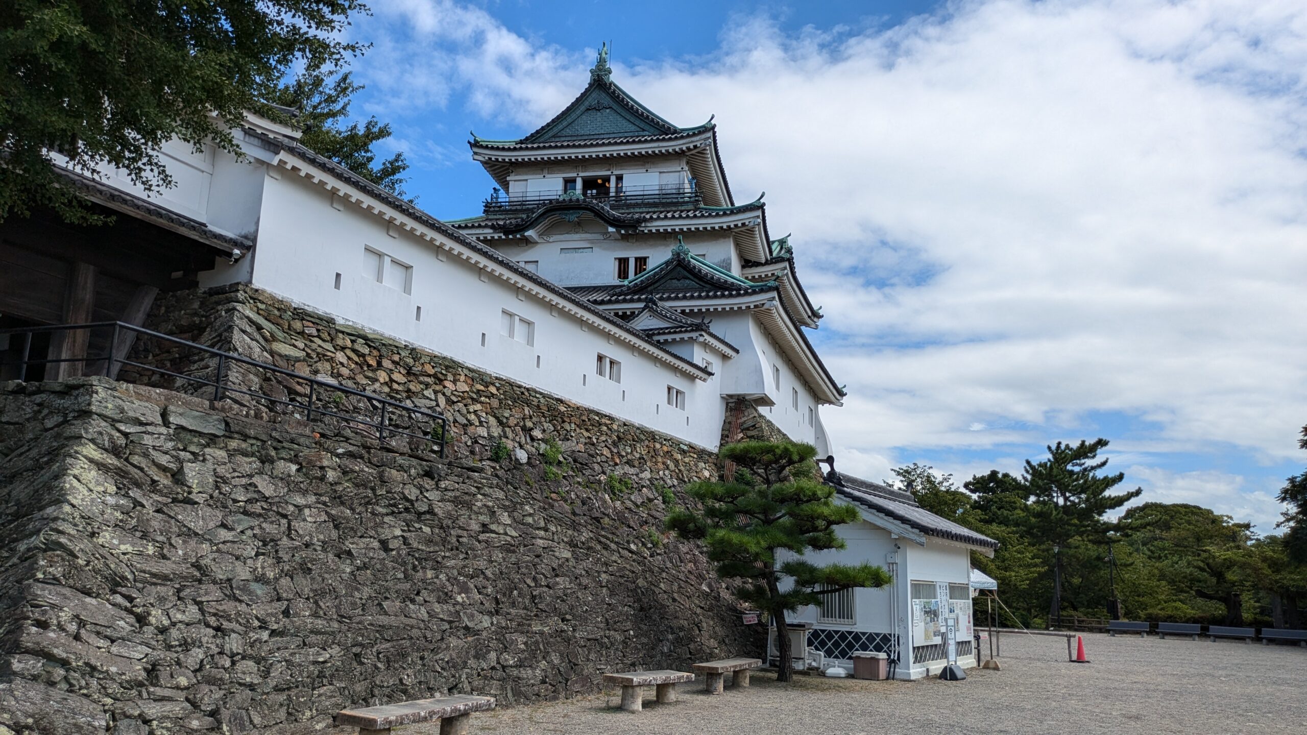 遠目にも、近影でも美しい姿を見せる和歌山城天守ですが、入館料を支払い内部に入ると建物の老朽化の影響が散見されます。天守の内部画像の掲載は控えますが、古さが同じでも木造建築のそれとは違うので、近代建築のコンクリ壁・天井の染み・汚れは見ていて気持ちの良いものではありません。名古屋城や江戸城天守の木造再建が実現し、観光的な成功を得れば全国のコンクリ天守の木造再建に弾みがつくと思います。しかし、名古屋城木造天守再建は、なかなか予定通り進行していません。和歌山城の木造再建は、是非とも実現をと願いますが、実現までに長い年月がかかるかもしれないと考えています。現実的にはコンクリのまま、熊本城のように耐震補強に舵を切る可能性があるのではないかとも考えています。